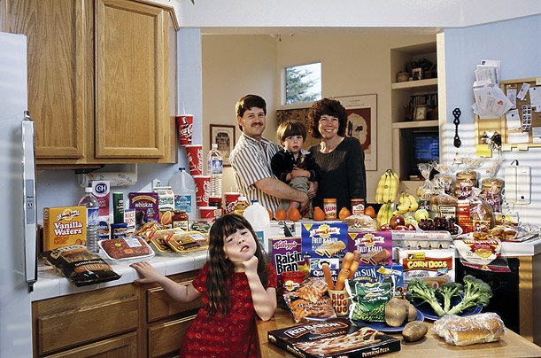 In the lower panel of this page you can see families and their food within fifteen countries.